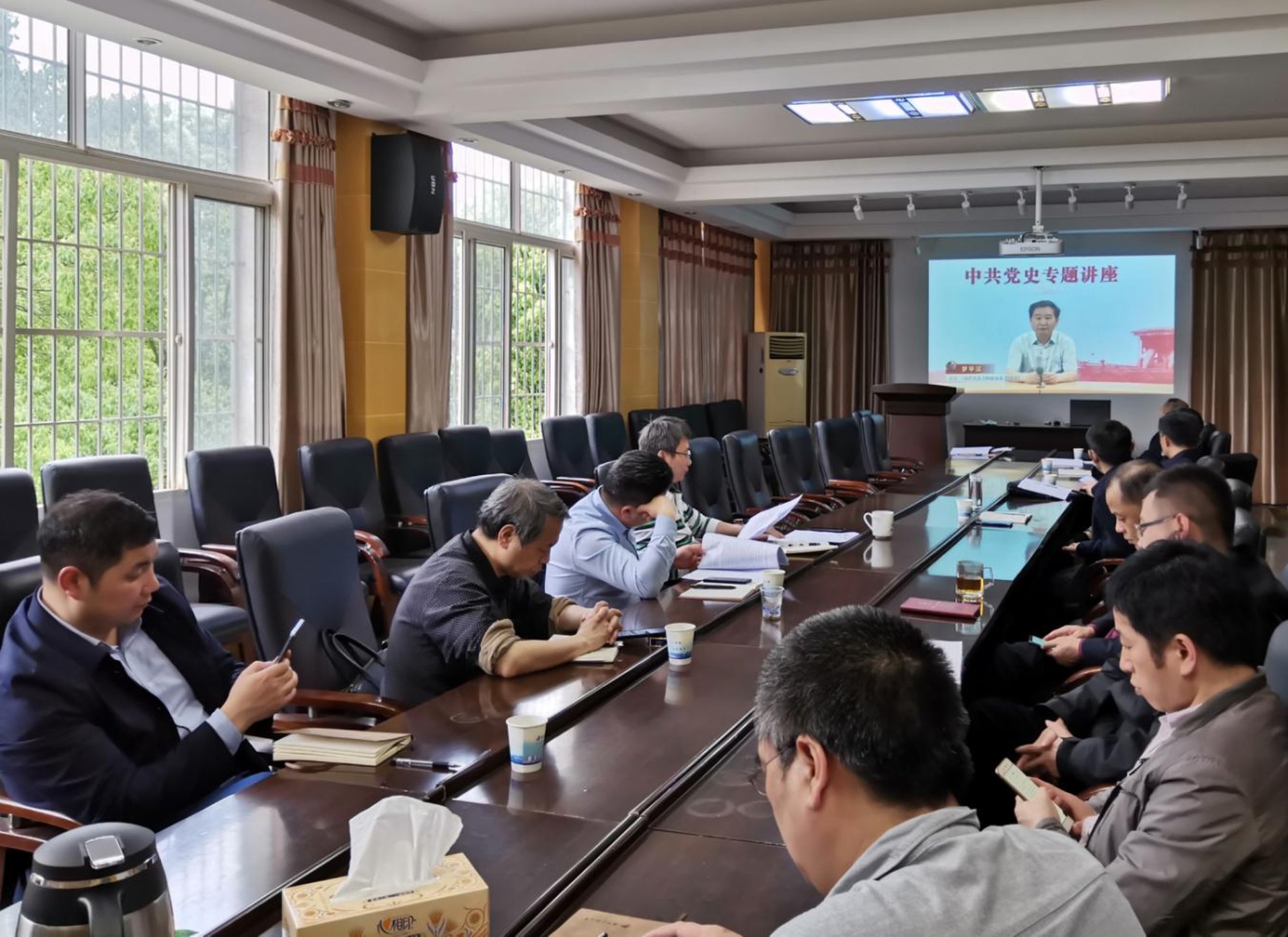 与会人员集中学习《习近平新时代中国特色社会主义思想学习问答》《中国共产党简史》等重点学习书目内容;余伟健同志带领学习许达哲《从百年党史中汲取奋进力量——在湖南第一师范足球论坛 开展党史学习教育时的讲课》内容,皮祖训同志带领学习习近平《关于坚持和发展中国特色社会主义的几个问题》内容等重点学习篇目。在此基础上,与会人员集中观看中共中央党校网络课程《中共党史专题讲座:新民主主义向社会主义过渡》视频学习内容。余伟健同志结合本次学习内容作中心发言,他指出,党员领导干部要深入研读党史,不断增强“四个自信”;坚定对马克思主义的信仰,增强对中国特色社会主义的理想信念,增进对以习近平同志为核心的党中央的信赖。