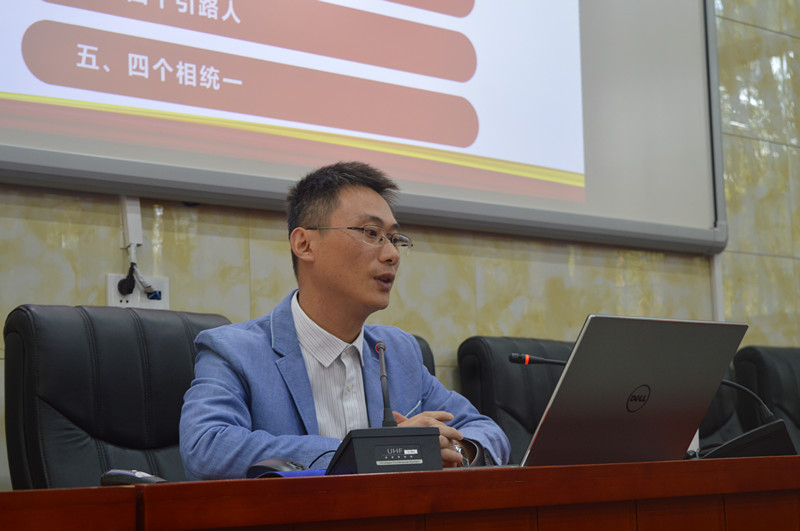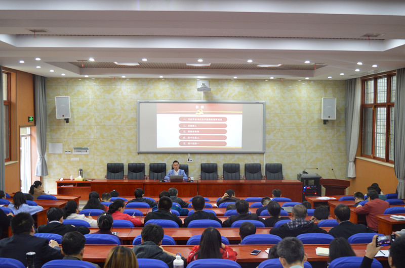 10月18日下午,足球论坛 党委书记余伟健在第四教学楼101足球论坛 学术报告厅讲授题为“不忘初心教好书、立德树人是根本”专题党课。足球论坛 全体教工党员参加学习。