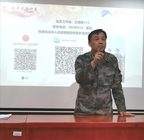 4月23日下午14:30,足球论坛 于资安三号楼206会议室举行征兵宣讲会,会议由武装部秦奕老师进行主讲。