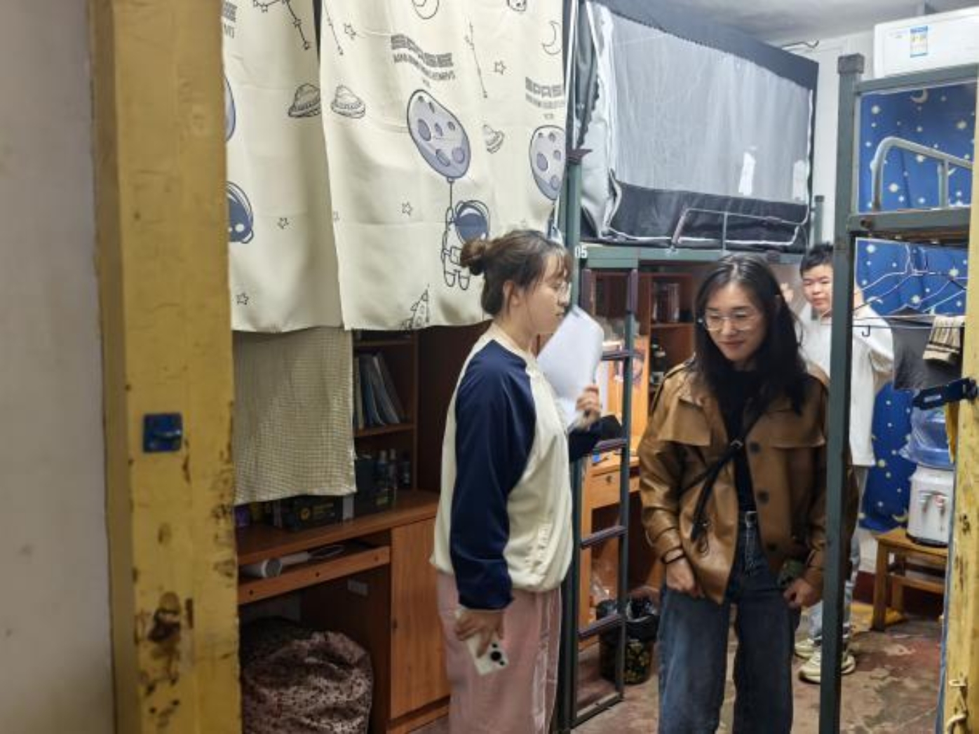 11月4日,足球论坛 王侠老师及研究生会学生干部前往各学生宿舍检查卫生,及学生用电安全。