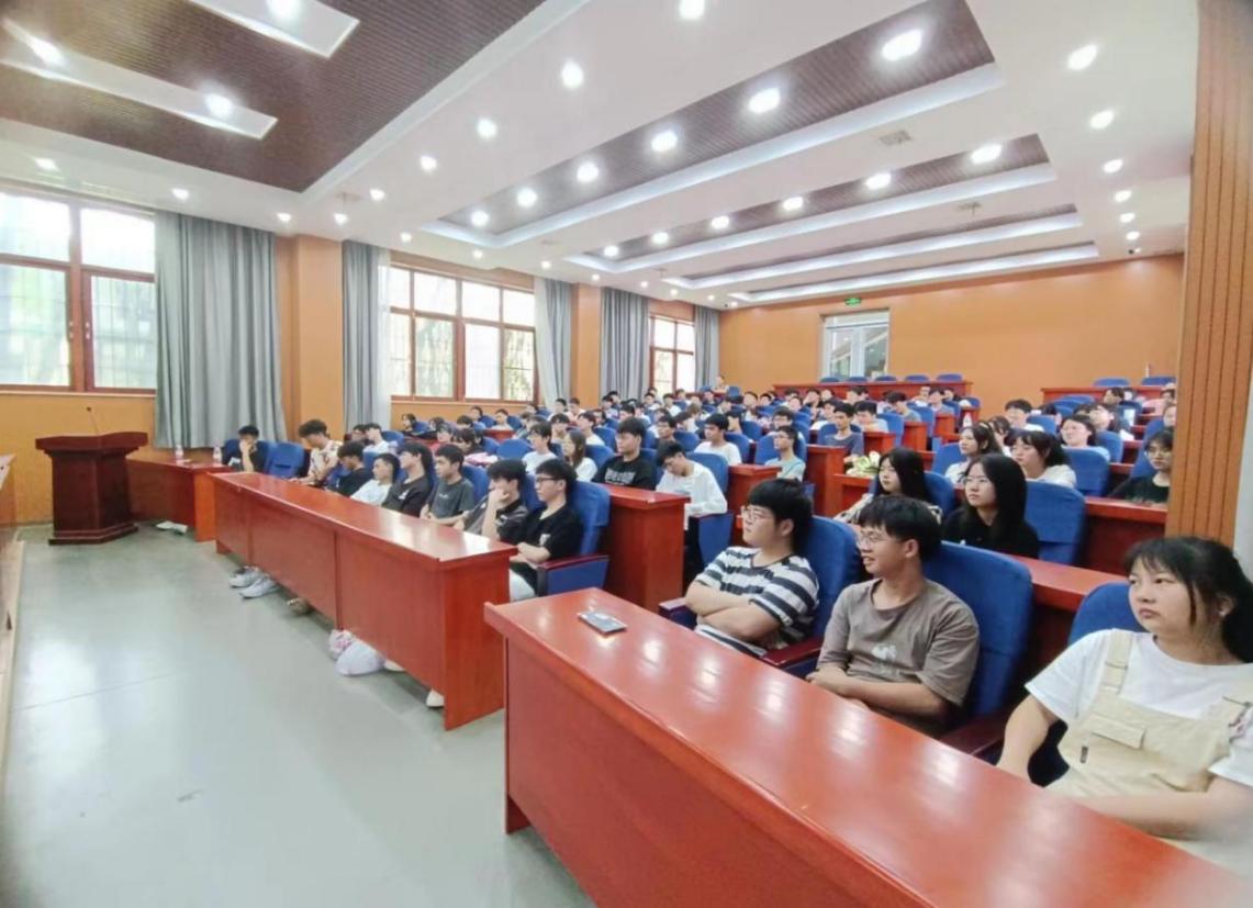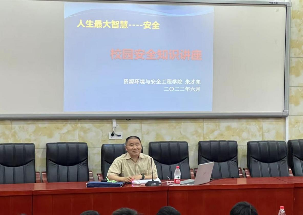 为迎接第21个全国“安全生产月”的到来,深入贯彻落实习近平总书记关于安全生产重要论述,2022年6月15日,足球论坛-足球推荐论坛 (以下简称“资安足球论坛 ”)于第四教学楼学术大讲堂举行了以“人生最大智慧─安全”为主题的校园安全知识讲座。此次讲座由朱才亮处长主讲,资安足球论坛 党委副书记刘韧以及辅导员雷茜莅临本次讲座。