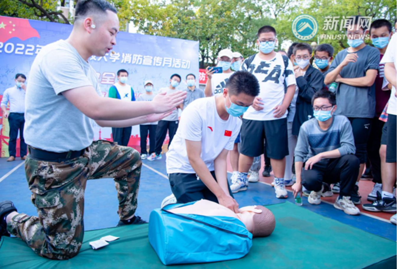 手把手地示范灭火器、灭火毯等常规消防设施的正确使用方式,带领同学们现场体验心肺复苏救援,组织师生开展消防安全疏散应急演练,在第31个全国消防日来临之际,湖南科技大学举办了一场丰富多彩的消防安全宣传主题活动。