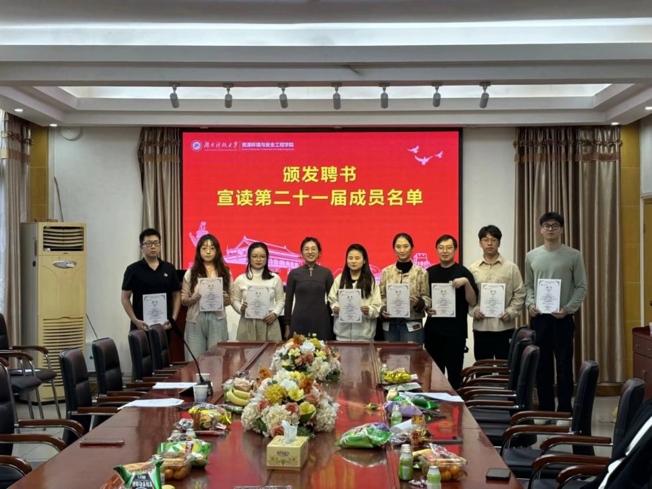 首先,由第二十届研究生会执行主席吕雪芬代表第二十届研究生会成员做工作总结及经验分享;其次,由王侠老师为第二十届研究生会成员颁发聘书,并正式公布第二十一届研究生会成员名单;为促进大家积极交流,相互了解,由第二十一届研究生会干部进行自我介绍。
