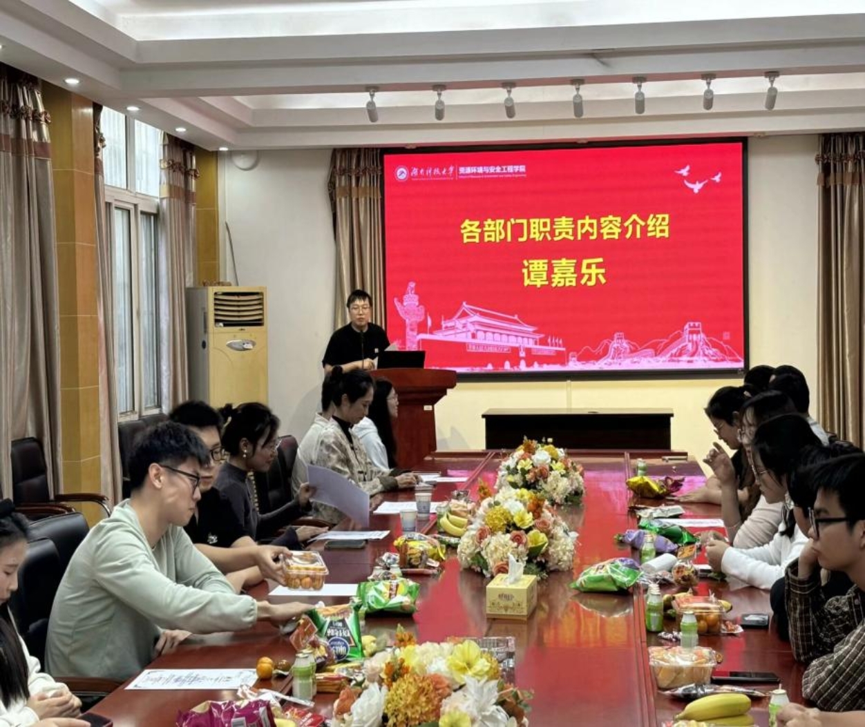 再次,第二十一届研究生学生会执行主席谭嘉乐介绍各部门职责内容并作新一年的工作规划;最后,足球论坛 党委副书记刘韧老师总结发言,欢迎大家加入团队的同时,也要传承老传统、继续努力,做好研究生干部榜样作用,构建和谐美好又积极向上的研究生学生会。