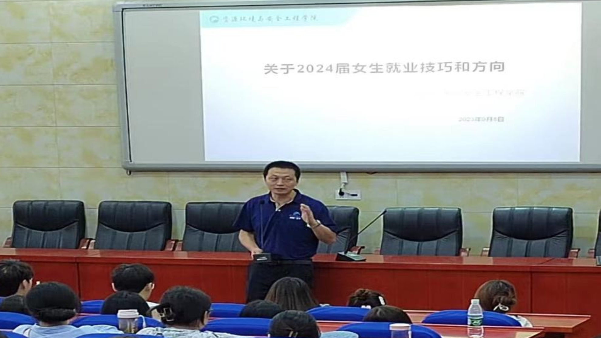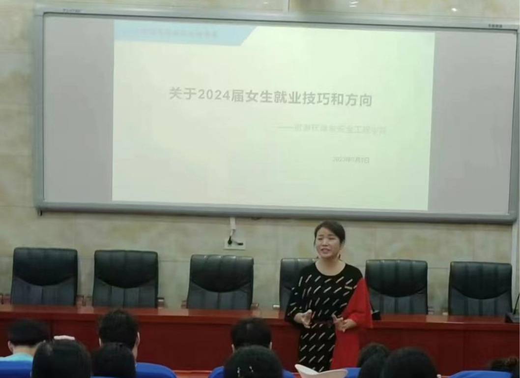党委副书记刘韧、就业辅导员李增蓉和2024届辅导员周丽萍,以及全体2024届学生,会议由周丽萍老师进行主持。