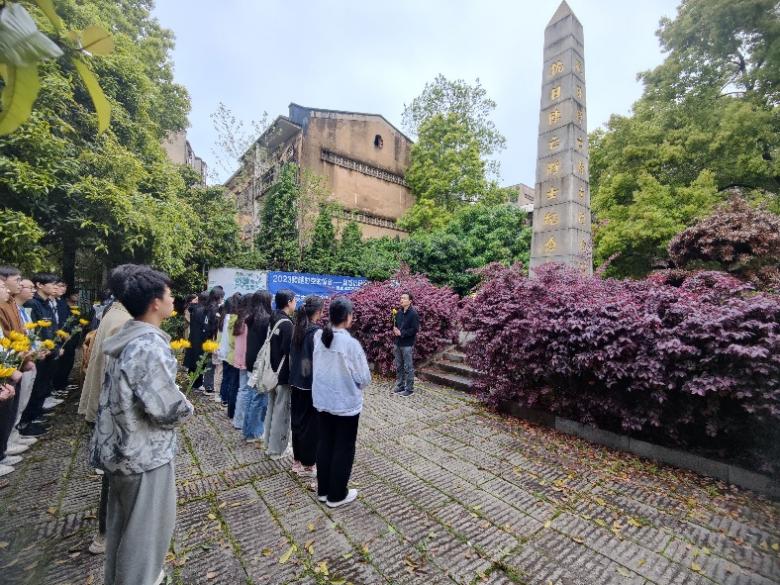 雨中寄哀思,清明祭英烈。2023年4月4日清明节前日,足球论坛-足球推荐论坛 20级安全工程二班、21级安全工程二班在崔辉、谭翀老师的带领下,来到湘潭市雨湖区抗日阵亡将士纪念碑前拜祭抗战英烈。首先,谭翀老师简单介绍了位于湘潭文庙奎星门前的抗日阵亡将士纪念碑的由来和历史,随后,学生代表敬献花篮、整理缎带,全体默哀一分钟,同学们向纪念碑三鞠躬并缓步绕行瞻仰纪念碑一周,将手捧的菊花轻轻放在纪念碑底座四周,向抗日阵亡将士的表达崇高的敬意和深深的思念。