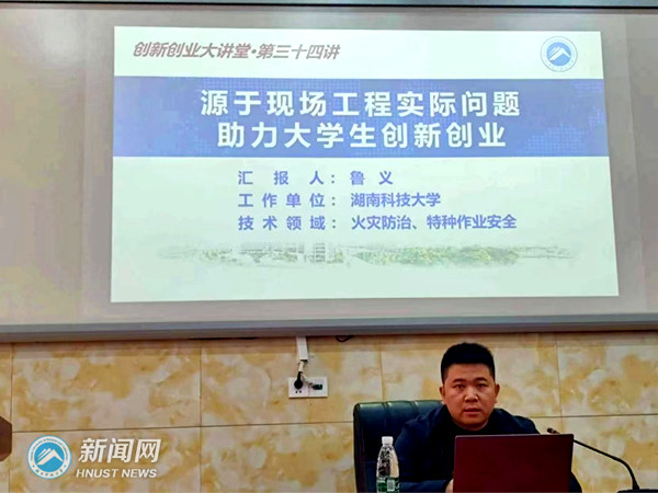 ▲鲁义教授主讲“源于现场工程实际问题,助力大学生创新创业