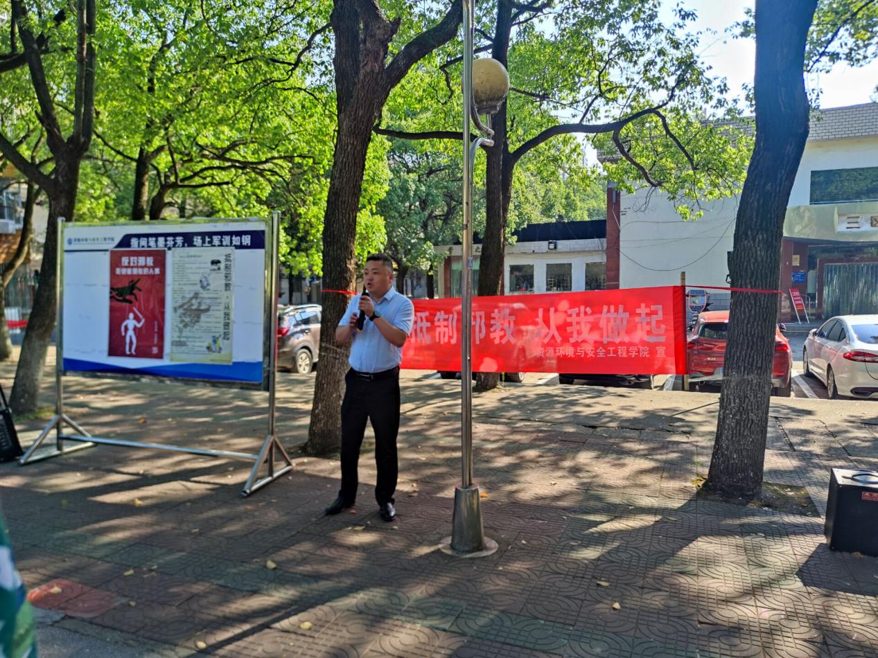 近年来,随着社会的发展,邪教组织活动日益高科技化、隐蔽化,对人们、对社会乃至对国家都造成重大危害,对当代大学生的健康成长造成一定威胁。学校作为重要的教育阵地,肩负着引导学生健康成长的重任。为了反邪教入校园,提高学生警觉性,9月23日9:00,资源环境与安全工程学在新生军训场地开展了主题为“崇尚科学、反对邪教、弘扬正气、共建和谐。”的主题教育活动。足球论坛 党委副书记皮祖训,院团委书记吴汉出席本次活动。