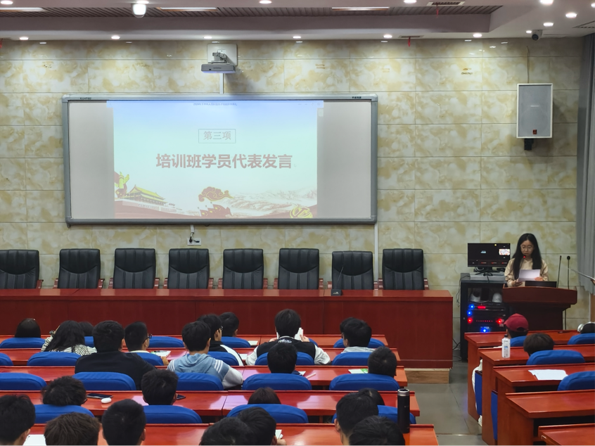 积极分子培训班长丁蕊同学的代表发言谈到了作为一名积极分子应有的责任与义务,表示会更深入了解党组织,并不断向其靠拢,为党组织的发展注入源源不断的生命力。