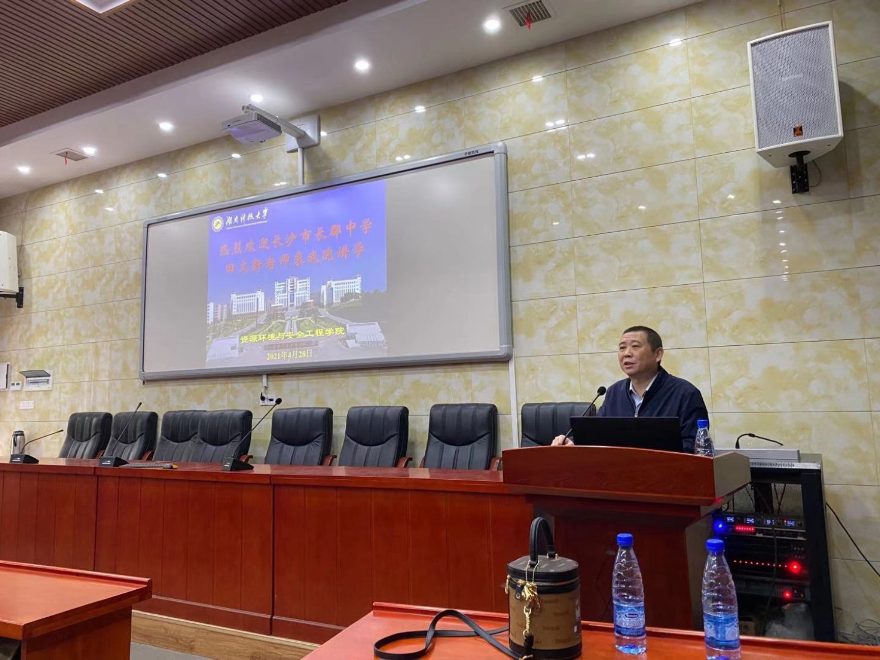 应足球论坛 邀请,4月28日,长沙市长郡中学高级教师田文新、梁琪两位老师应邀在足球推荐论坛 学术报告厅作题为《新课改背景下的教师角色定位与职业素养》的学术报告。地理系专业教师、2018级地理科学专业全部见习生到场聆听。