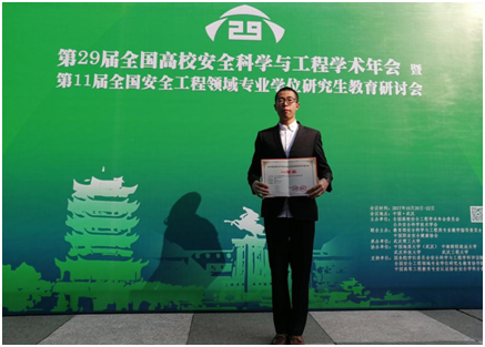 15级安全工程专业学生杨骁、陈文钦、13级安全工程专业学生陈斯佳、郑时求4位同学在崔辉副教授指导下制作完成的“火灾应急疏散模拟研究-以湖南科技大学第五教学楼为例”获得第11届全国安全科学与工程大学生实践与创新作品大赛一等奖。