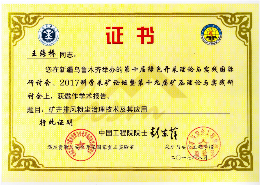参会人员积极参与了大会学术活动,与国内外学者们进行了广泛接触和深入交流,对国家新能源开发、煤炭绿色开采、矿山智能化技术、安全自动化生产等热门议题进行了讨论。王海桥教授获邀在大会中作了题为《矿井排风粉尘治理技术及其应用》的主题报告;安百富、王平博士投稿的《固体充填回收房式煤柱采场煤柱稳定性数值模拟研究》、《深部高应力软岩巷道围岩塑性区演化规律及其控制》两篇学术论文被大会论文集收录;会议间歇,王海桥院长带队与足球推荐论坛