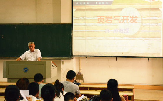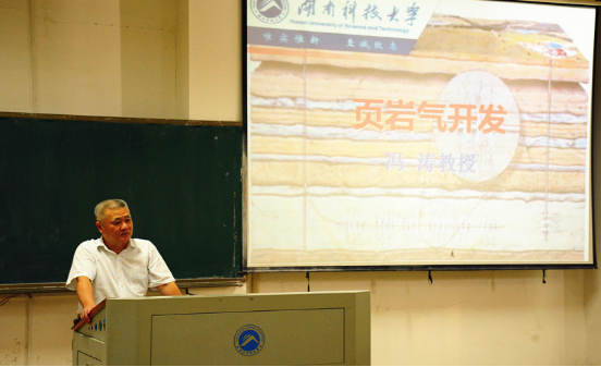 冯涛教授首先为学员作了题为《页岩气开发》的学术讲座,分别从页岩气概述、地质特征、综合地质评价、开发关键技术与中国及湖南页岩气开发现状五个方面进行了讲解。他首先为学员们讲解了页岩气的定义、赋存范围、成藏过程与成因类型,分析了温压条件、裂隙发育特征、岩石矿物、地质储量、物性特征对岩层气成藏的影响,在此基础上提出了岩层气开发的关键技术。冯涛教授是湖南省科技重大专项“湖南页岩气资源潜力评价与电磁探测系统研发”项目的首席专家,该项目由湖南科技大学牵头,与湖南继善高科技有限公司、中南大学、神华集团、湖南省煤炭地质勘测局协作完成,对湖南页岩气资源选区评价技术进行了深入系统研究,研发了一套页岩气电磁探测系统。