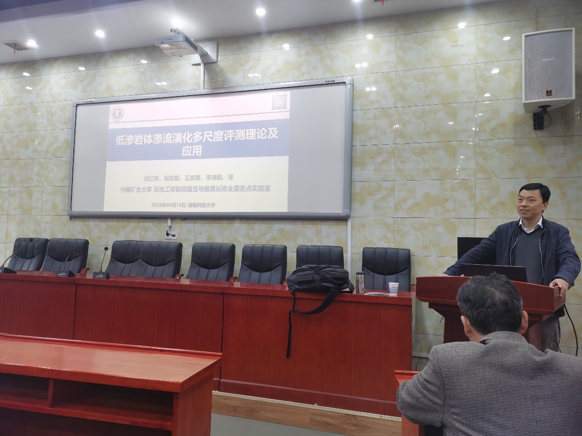 4月10日,应足球论坛 邀请,中国矿业大学国家级青年人才刘江峰教授来院作了题为《低渗岩体渗流演化多尺度评测基础理论及应用》的学术报告,副院长李青锋教授主持会议。