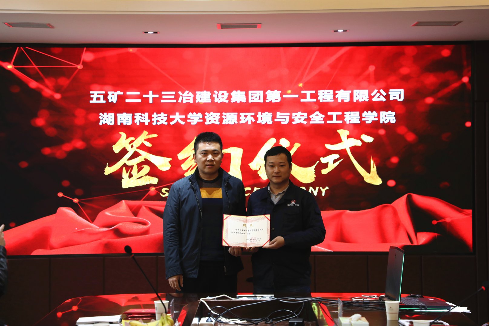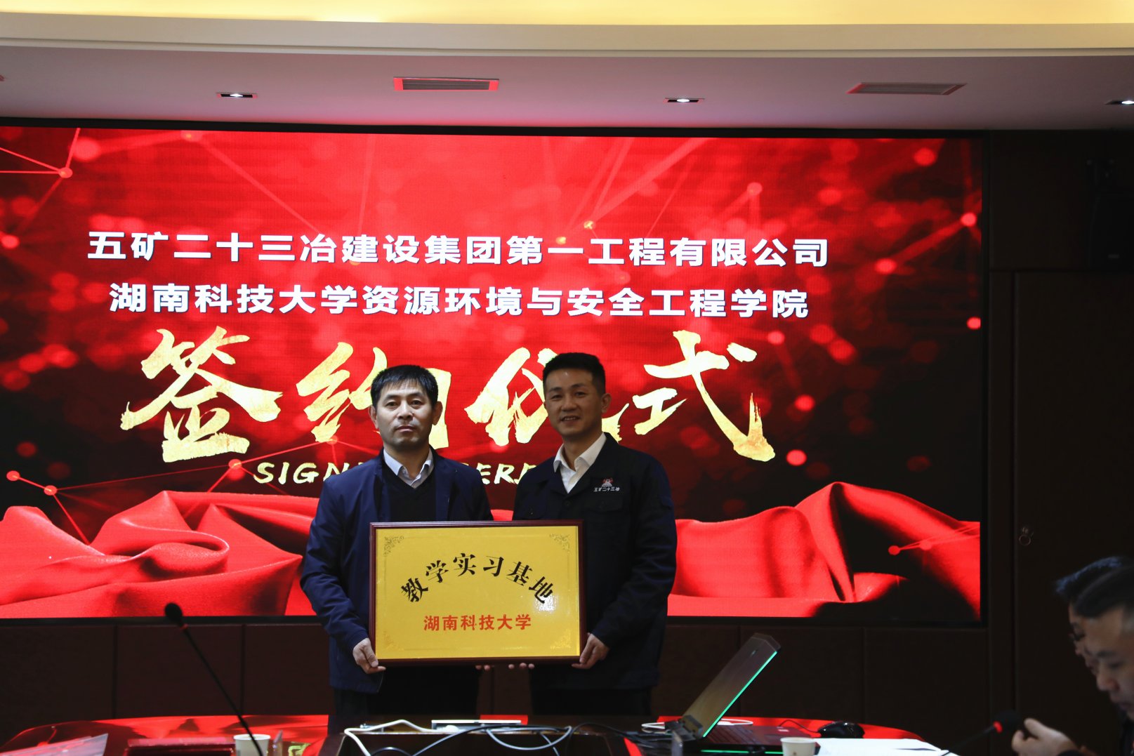为开展产学研融合校企合作,提升人才培养质量,本着“互相尊重、平等合作、互利共赢、共同发展的原则”,足球推荐论坛 与五矿二十三冶建设集团第一工程有限公司(以下简称一公司)于3月16日上午9点在一公司总部大楼410会议室举行“实习基地建设”签约授牌仪式。