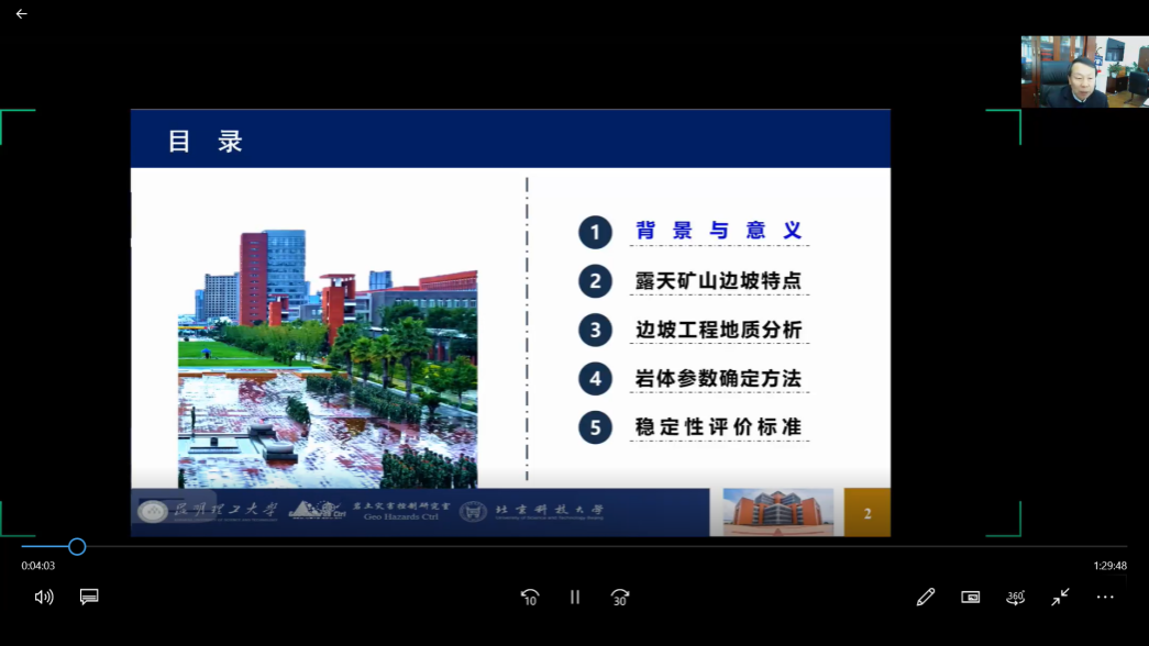 应足球论坛 邀请,2021年12月30日上午9时30分,教育部“长江学者奖励计划”特聘教授、昆明理工大学国土资源工程足球论坛 院长吴顺川教授在足球论坛 学术报告厅作了题为《露天矿山边坡设计的几个关键问题探讨》的学术报告。本次报告采用线上报告的形式,院长余伟健教授主持报告。