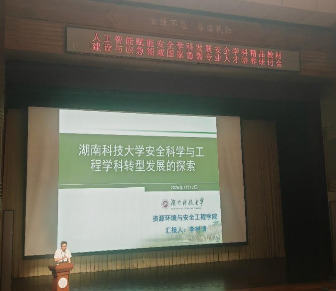会议期间,来自25所国内安全学科高校的相关学科负责人,根据各个学校安全学科人工智能发展现状、人才培养特色等做了主题交流报告。李树清院长应邀汇报了《湖南科技大学安全科学与工程学科转型发展的探索》主题报告,对我校安全学科的传统特色、转型发展探索模式等相关情况进行了汇报交流,现场取得了较好的反响。