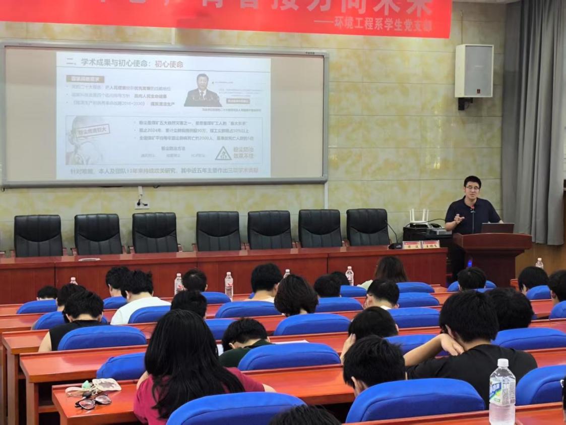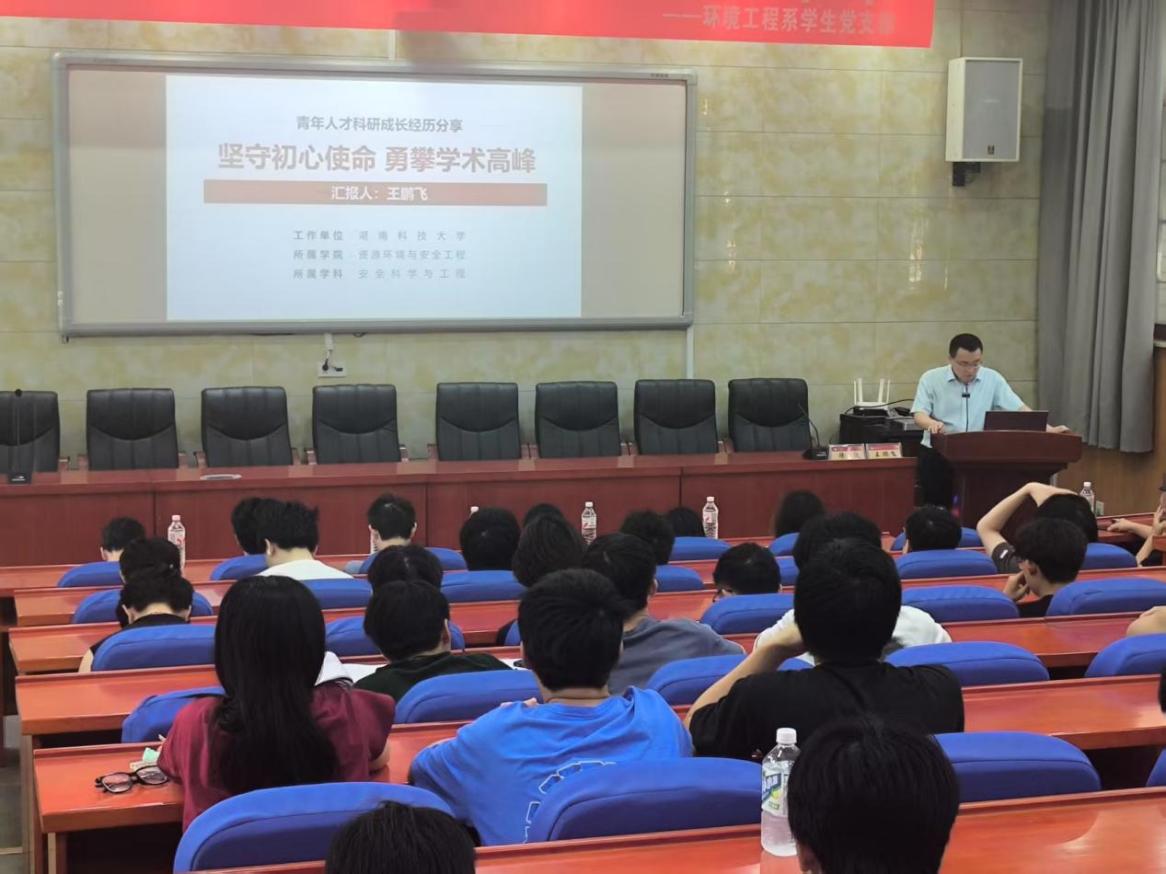 王鹏飞教授作为国家高层次青年人才、湖南省杰出青年基金以及全国煤炭青年科技奖获得者,为在场师生分享了自己的科研成长经历,为大家讲解如何坚守初心使命,勇攀学术高峰。王教授深耕矿山通风与粉尘防治领域,首先分享了在初涉该领域研究时,存在矿山作业环境恶劣、监测数据复杂以及传统防治技术落后等诸多局限。但出于改善矿工工作环境、保障矿工生命健康的初心,他带领团队扎根矿山一线,历经无数次实地调研与实验优化,通过团队的研发成果大幅降低井下粉尘浓度。同时,他强调团队协作和持续学习的重要性,鼓励青年科研者不畏艰难、勇毅前行。在互动环节,听众踊跃提问,王教授针对科研创新方向选择、学术成果转化等问题,结合自身经历一一解答。此次分享不仅展现了一位青年学者的奋斗历程,更为在场人员注入了投身科研、勇毅前行的信心与动力。