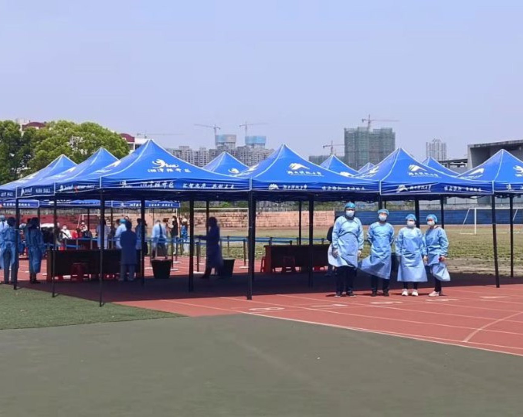 行政教工党支部党员刘长春、周玲花作为足球论坛 党政和教务的办公室主任,主动申请成为此次疫情防控工作志愿者;不但在工作上发挥先干多干的带头作用,更是将服务师生的工作精神也发挥到志愿活动中。组织师生有序检测、细致提醒注意事项、及时处理突发情况;两位办公室主任将高水平的工作能力和扎实的工作作风带到了志愿服务中,让所服务的师生快速、顺利地完成了核酸检测。