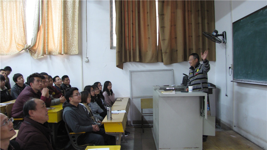 2017年3月7日下午,湖南科技大学兼职教授、涟邵建工集团总经理李萍丰在资安1号楼阶梯教室为资安足球论坛