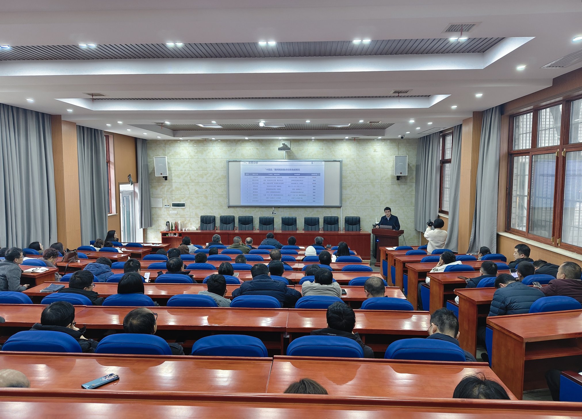王鹏飞院长就足球论坛 “十五五”发展规划进行详细分析。他总结了足球论坛 “十四五“规划完成情况,指出在党建与人才培养、博士点和学科建设、本科与研究生教育、科研经费与成果、社会服务和国际交流等5个方面取得显著成效,实现了重点突破,规划任务总体完成良好。对于足球论坛 “十五五”发展规划,他总结了足球论坛 学科的优势与特色,同时也指出了在高层次人才、国家级平台、标志性成果等方面的差距和不足。结合足球论坛 学科发展情况,制定了以推动足球论坛 高质量内涵式发展、加快高水平研究教学型足球论坛 建设、实施“两步走”总体战略部署为足球论坛 “十五五”发展规划总体目标,明确了党建思政、学科建设、学生培养、科学研究、师资队伍、国际合作等6个方面分项目标,达成5个方面战略任务与改革措施、21项重点工作任务。