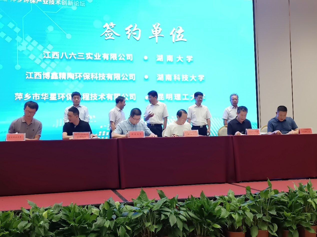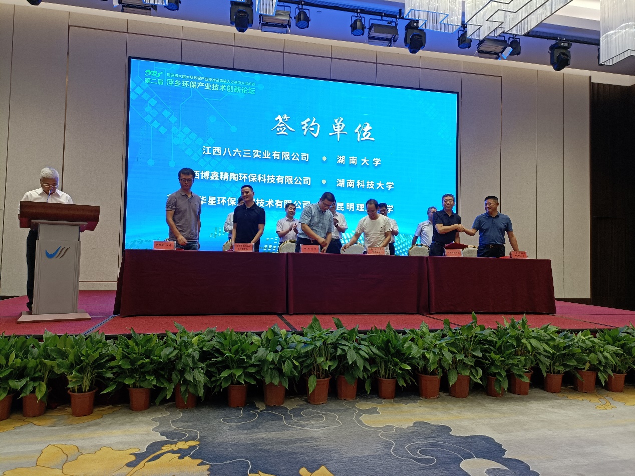 论坛上,王海桥院长作为项目负责人,代表我校与江西博鑫精陶环保科技有限公司就“平板陶瓷膜应用矿井水净化回用技术”项目进行了合作协议现场签约。