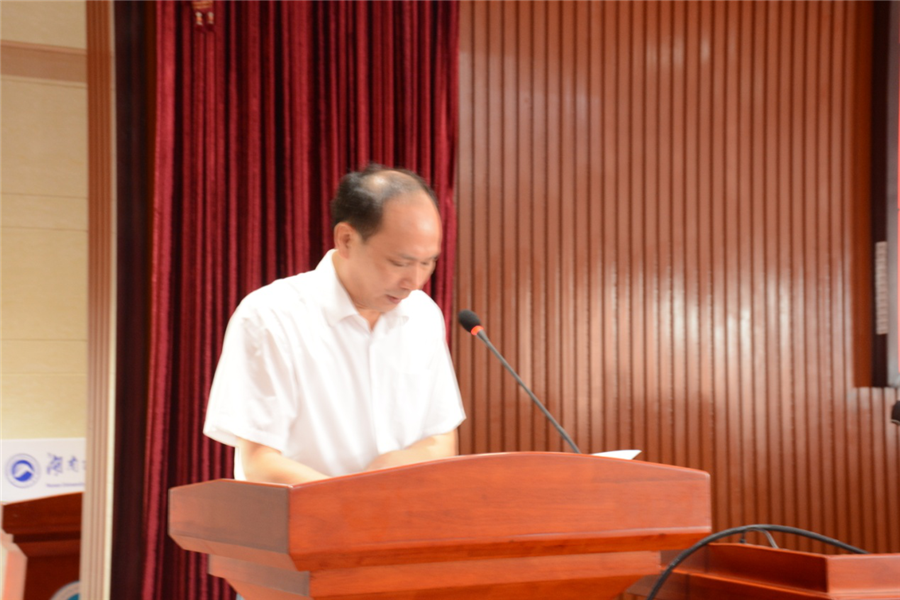随后,湖南省教育厅葛建中副厅长做重要讲话。葛建中代表省教育厅向暑期学校的顺利开学表示热烈的祝贺!向湖南科技大学各级领导、各位老师对暑期学校的高度重视和精心筹备表示衷心的感谢!对莅临暑期学校讲学的各位专家表示崇高的敬意!同时对参加本期暑期学校的各位研究生朋友们表示热烈欢迎!为了让各位老师和学员更加了解湖南省的研究生培养工作,葛建中就湖南省在研究生培养方面实施的两大工程做个简单介绍。一是研究生教育创新工程,主要是加强研究生创新能力培养,二是研究生专业能力提升工程,主要是提升研究生专业实践能力。葛建中希望研究生朋友们珍惜这次难得的学习机会,端正学习态度,认真听讲、勤于思考、虚心请教、真诚交流。学习期间天气比较炎热,希望大家能够克服困难,不忘来暑期学校学习的初心。